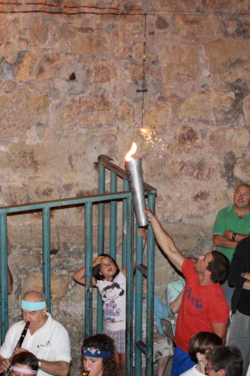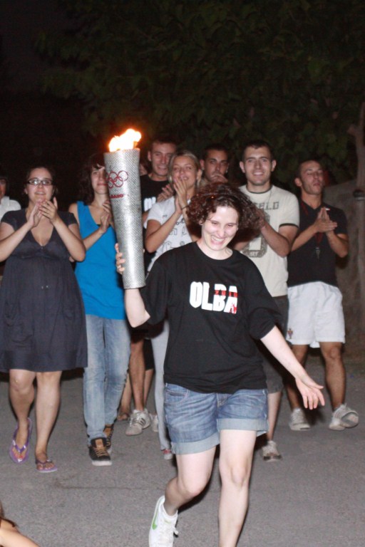 Estas fiestas han significado que Olba se haya convertido en villa olímpica pero no penséis en algo simple, ni mucho menos! Gracias al ingenio de la Comisión de este año, a la cual me gustaría felicitar por el esfuerzo y las ganas que han puesto desde el primer momento, hemos podido ver como la llama olímpica llegaba desde la antigua Grecia, remontando el curso del Mijares para llegar hasta los Ibañez y de allí a nuestro frontón donde escoltada por la olímpica Unión Musical de Olba (UMO) y acompañada por todos llegaba a la plaza donde de allí se culminó el espectáculo con el encendido del pebetero obra del artista y futuro genio Jaime Fortea.