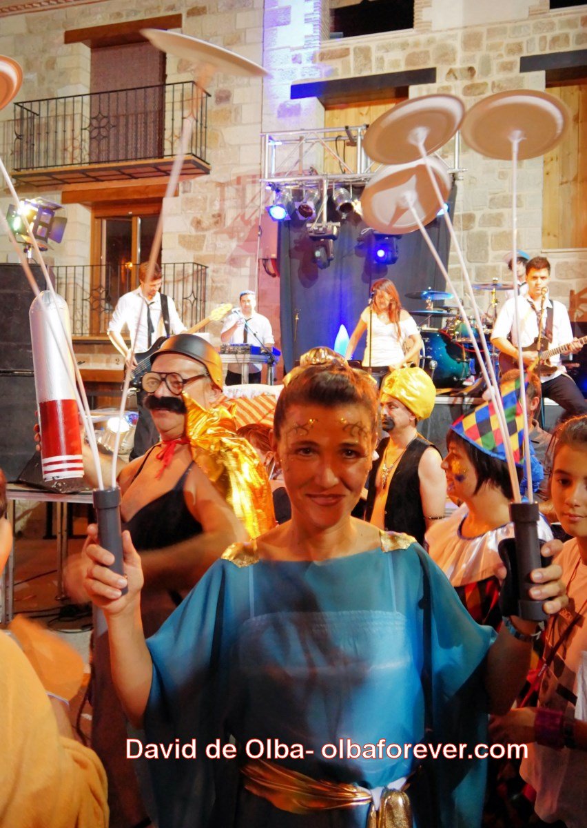 El pregón. Presidido desde el balcón consistorial con el discurso de rigor por parte de Comisión de Fiestas y con la sorpresa de una fantástica canción dedicada al Pueblo e interpretada por parte de las mejores voces femeninas de Olba acompañadas por las guitarras y dirigidas por el maestro Paco “ Clara “.