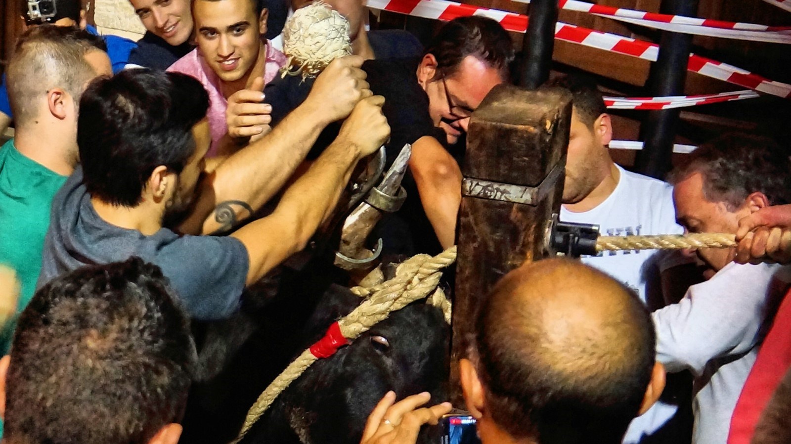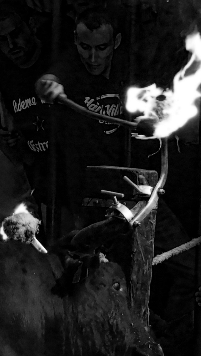 Toros… tira soga, suelta soga… Quiero embolar! Enciende ¡! Corta ¡!! Que cortes!!! La pinza!!…. y sale del pilón … incluso con un poco de suerte con las dos bolas encendidas….. Críticas a la gestión de licenciados cumlaude en embolados olbenses…. Eso sí… nos quitaron el único burladero taurino para poner en su lugar algo más parecido por su altura a un photocall… todo sea por el bien y seguridad de la fiesta.