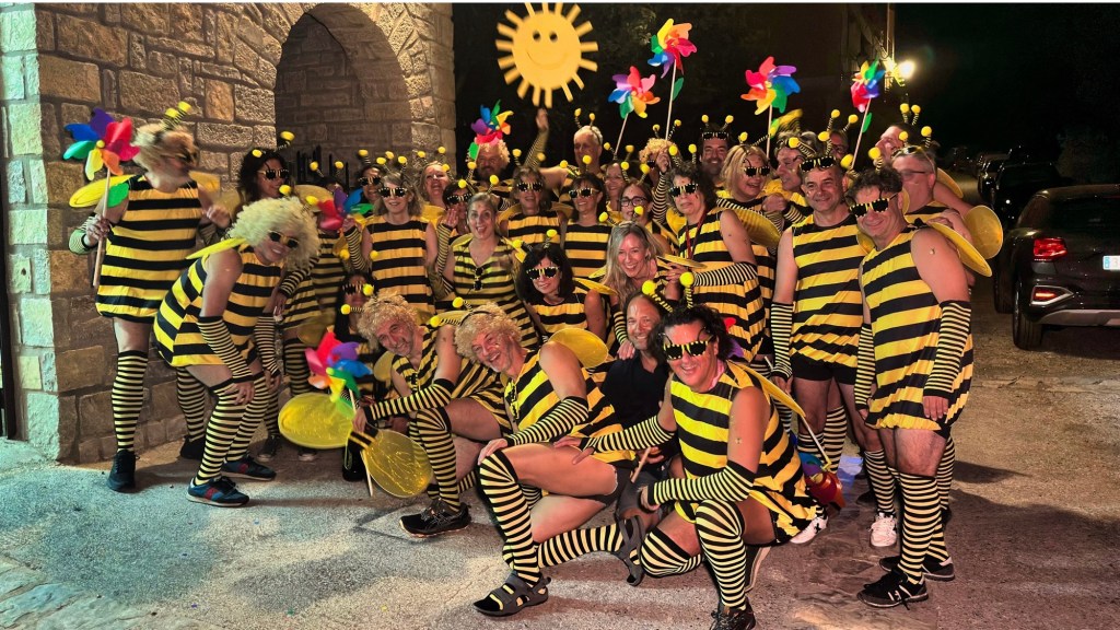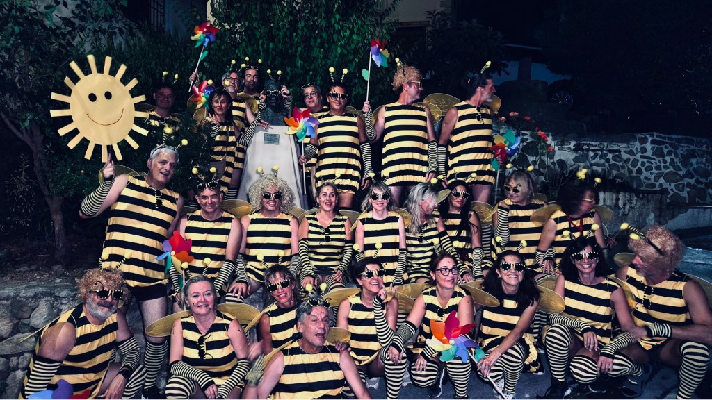 Los disfraces , con el tema “ la televisión española “ , las abejas de la Peña Skandalo los mejores y ganaron los Grillaos pero por encima de todo eso , el gran ambiente tanto en la plaza como en el frontón con la musica de los @angangas y el próximo tema : “ África “.
